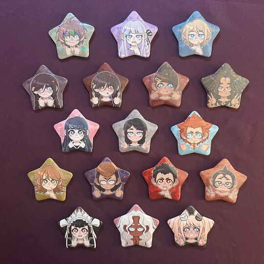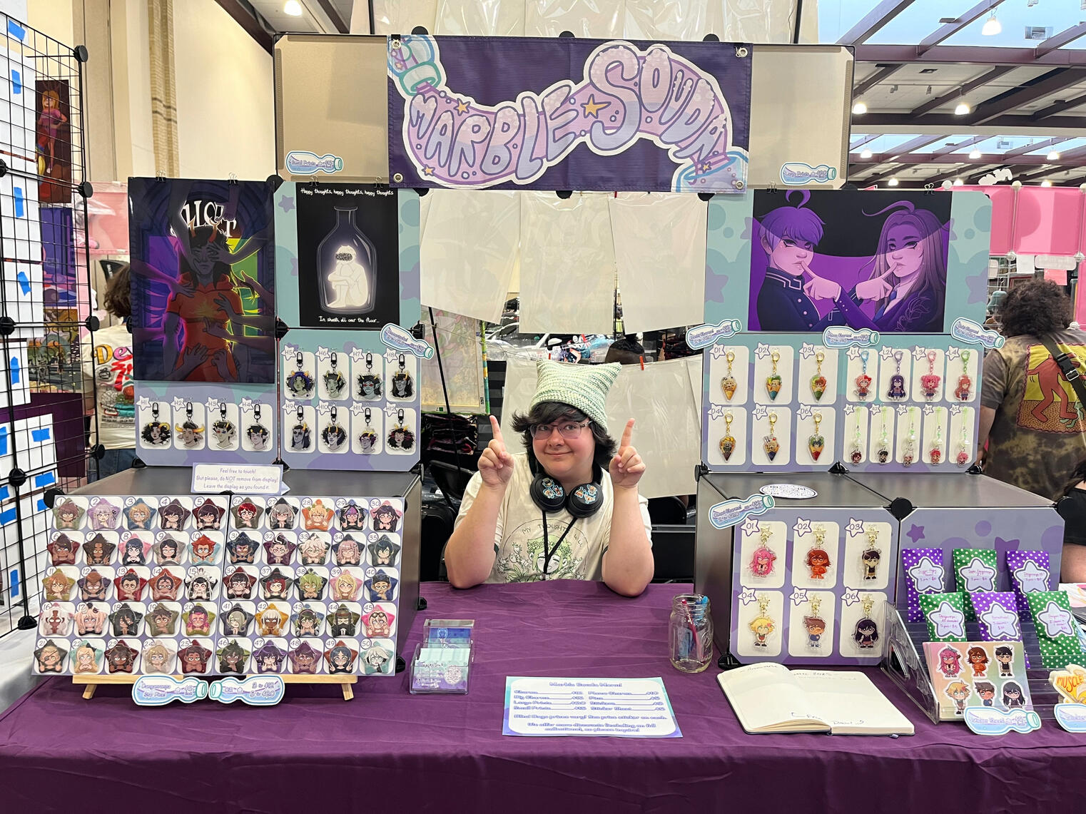 Hello there! We are Sokka (artist) and Stef (manager), the folks behind Marble Souda Studio! We like to say we make things for media we love for others who love them too! Every product you’ll find was made by the hands of an obsessed nerd, which guarantees your charm or pin or whatever you gravitate to will be a true labor of love! Proudly neurodivergent and queer owned, we always strive to be inclusive and make products others like us would love, no matter the media’s popularity!