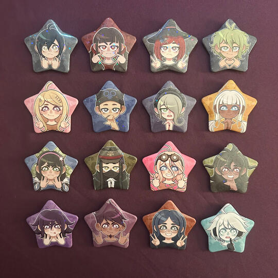Hello there! We are Sokka (artist) and Stef (manager), the folks behind Marble Souda Studio! We like to say we make things for media we love for others who love them too! Every product you’ll find was made by the hands of an obsessed nerd, which guarantees your charm or pin or whatever you gravitate to will be a true labor of love! Proudly neurodivergent and queer owned, we always strive to be inclusive and make products others like us would love, no matter the media’s popularity!